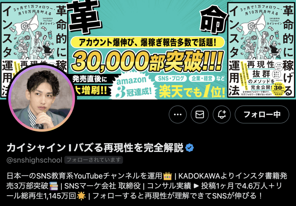 そこでプロに教わりながらアカウントを運用していったら、1ヶ月でフォローが1万人になって、4ヶ月で5万人まで増えたんですよ。独学でやっていた2年間がもうアホらしく思えるほど、短期間で成果が出ました。