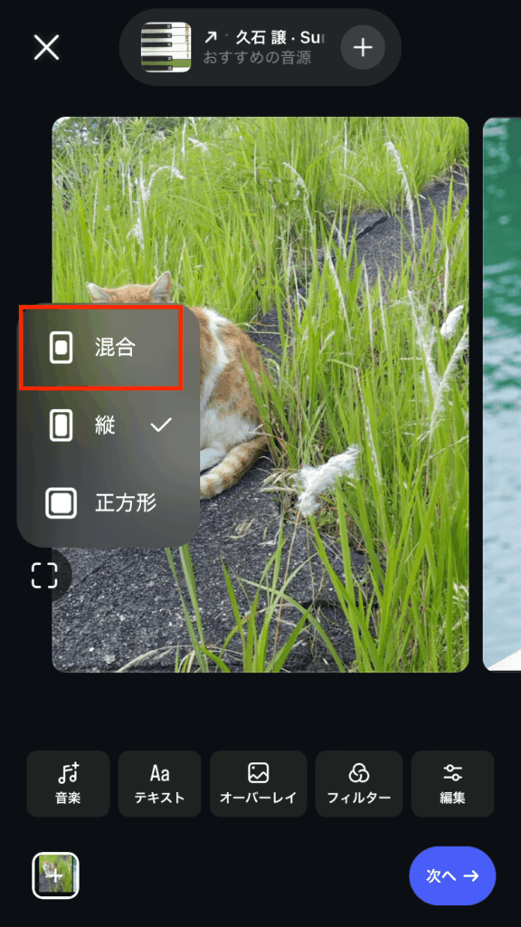 - 「混合」を選び「次へ」をタップする