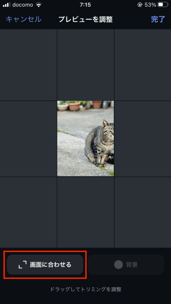 - 表示位置を調整し「画面に合わせる」をタップする