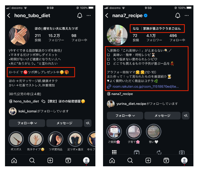 ユーザー導線が整っていなければ収益につながりにくいです。リンクやハイライトが整理されていなかったり投稿内に次の行動が示されていないと、どうすればいいかユーザーが迷ってしまいます。「どうやって買うの?」と思われると、せっかく興味を持ってもらっても途中離脱される可能性が高いです。