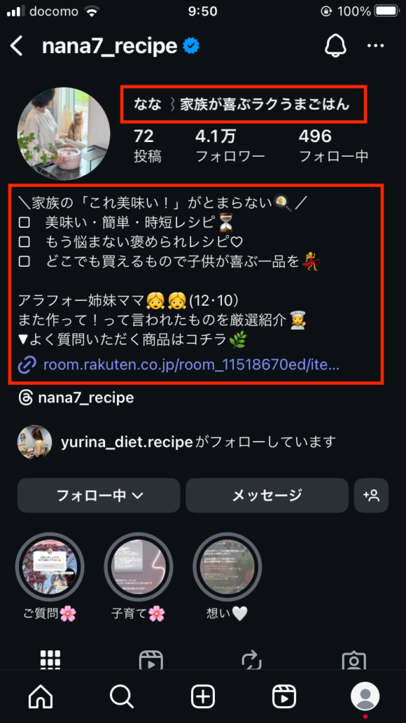 ユーザーが最初に見るのはプロフィールです。アカウント名や紹介文で発信内容が一目でわかるようにし、リンクや導線も整えておきましょう。