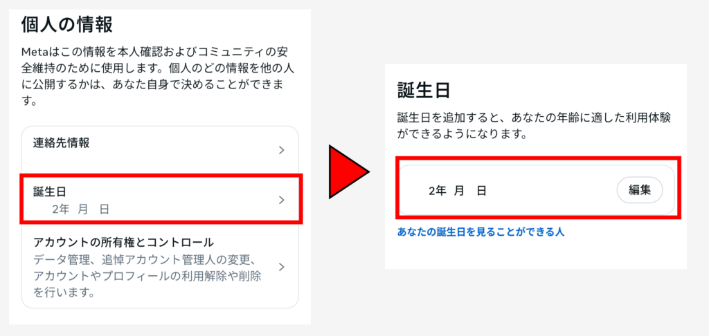 最後に、生年月日を確認・設定できる画面になります。生年月日が未登録の場合、正しい情報を入力してください。