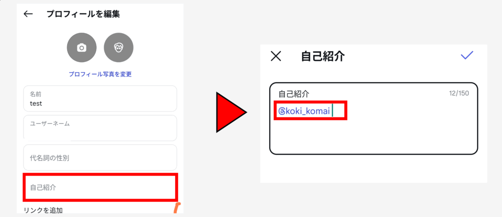 そのまま自己紹介文に「@◯◯◯」と入力し、文字が青くなればメンションができています。