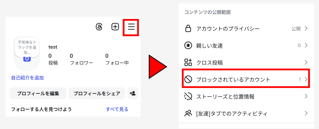 もし過去にブロックした相手にメンションを送りたいときは、ブロックを解除してください。ブロックを解除するには、まずプロフィールから設定画面に移行し「ブロックされているアカウント」の一覧をタップしましょう。