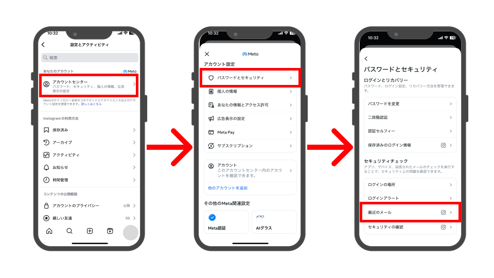 表示されているものが、インスタ公式からのメールです。内容を確認して、自身が取るべき行動を見極めましょう。