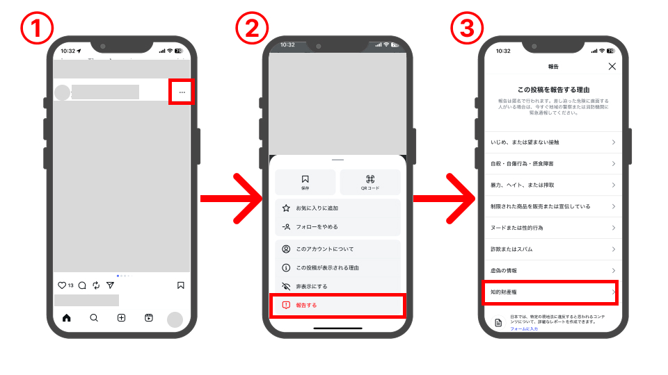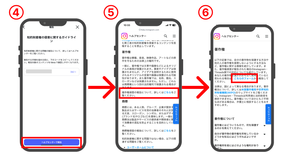 インスタの専用フォームから報告しましょう。手順は以下のとおりです。