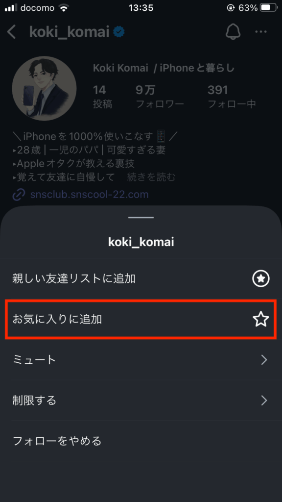 2. プロフィールからお気に入り登録する方法
