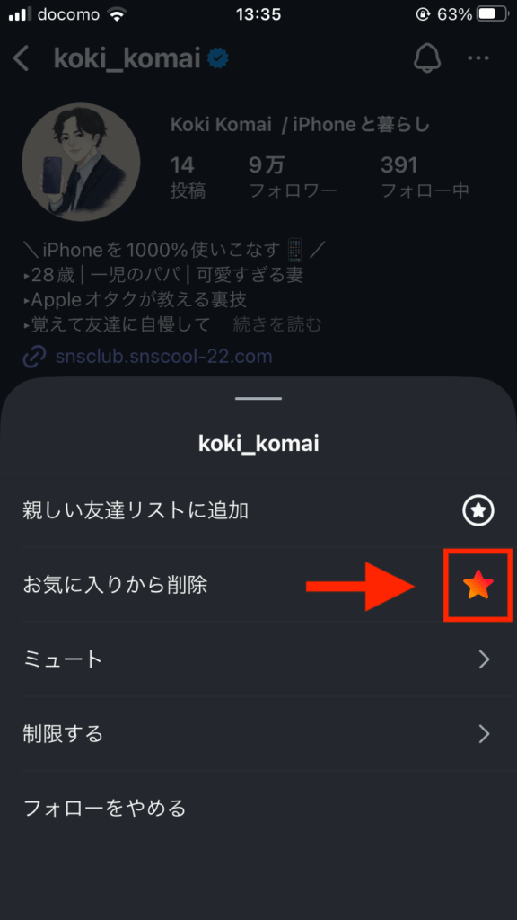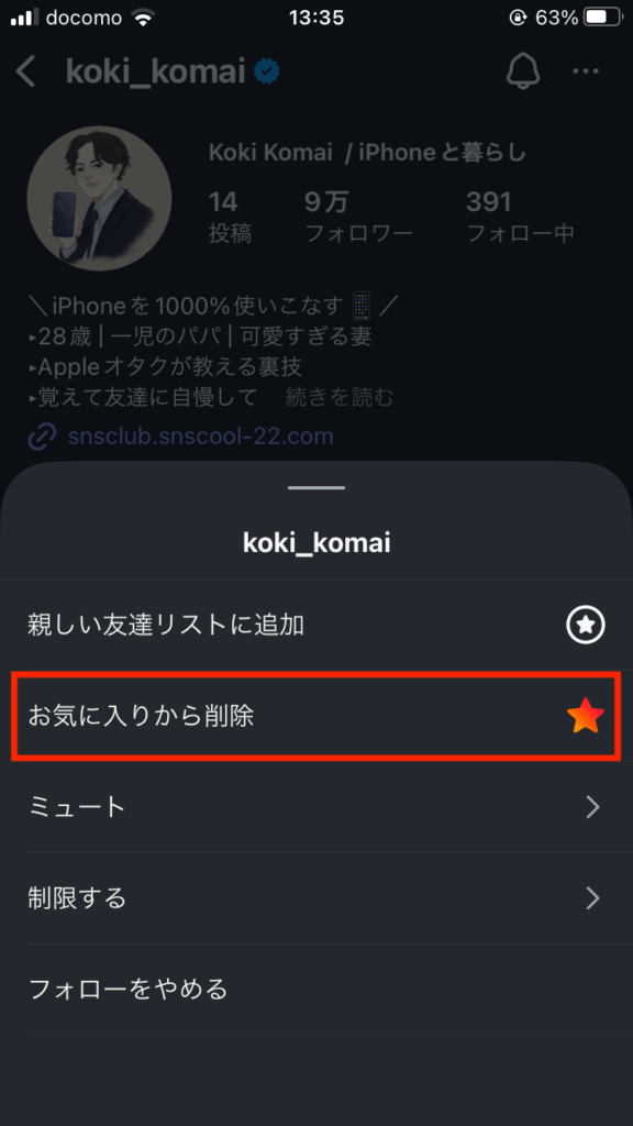4. お気に入り登録したアカウントを削除する方法