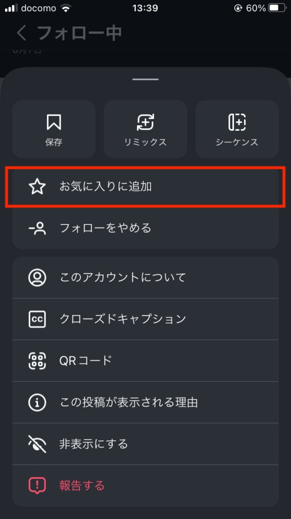 - お気に入り:特定のアカウントの投稿を優先表示する