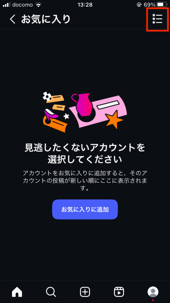 インスタのお気に入り機能の使い方がわからない