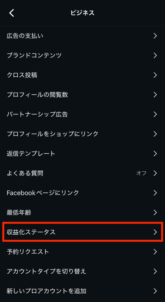 機能の利用資格の有無は「収益化ステータス」から確認できますが、プロアカウントへの切り替えが必要です。無料かつ簡単に設定できるので、こちらの記事を参考に実践してみてください。