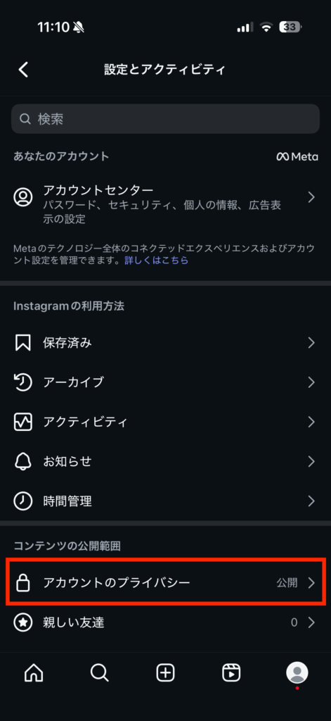 - インスタを非公開にする方法
