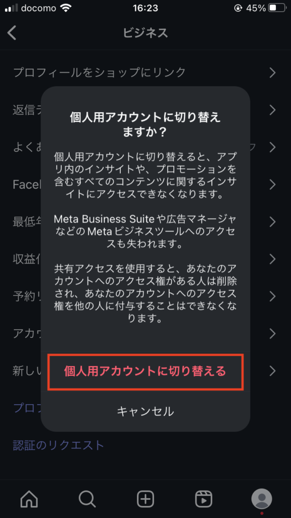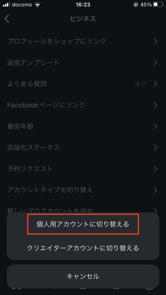 プロアカウントから個人アカウントに戻す方法