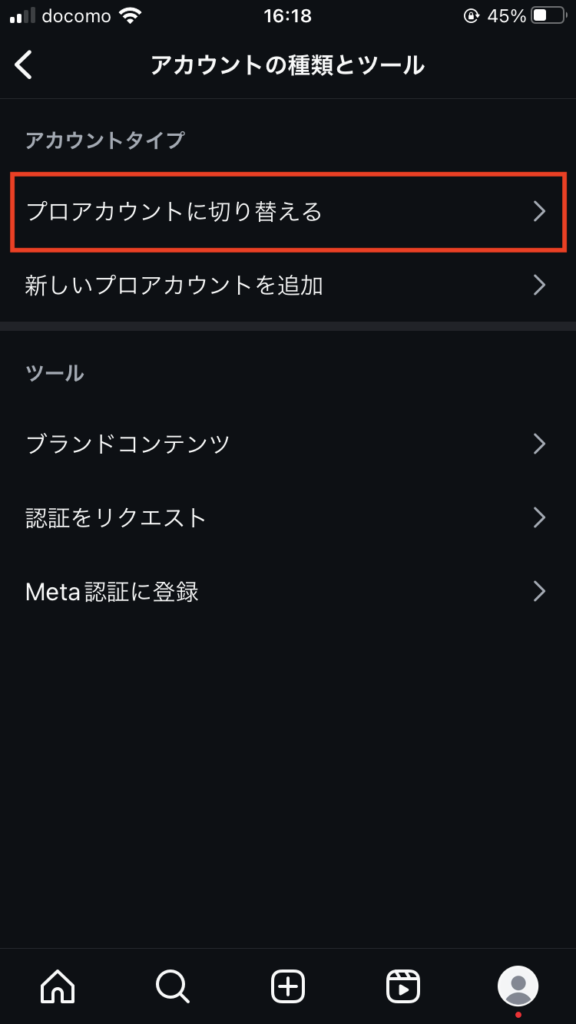 個人アカウントからプロアカウントに切り替える方法