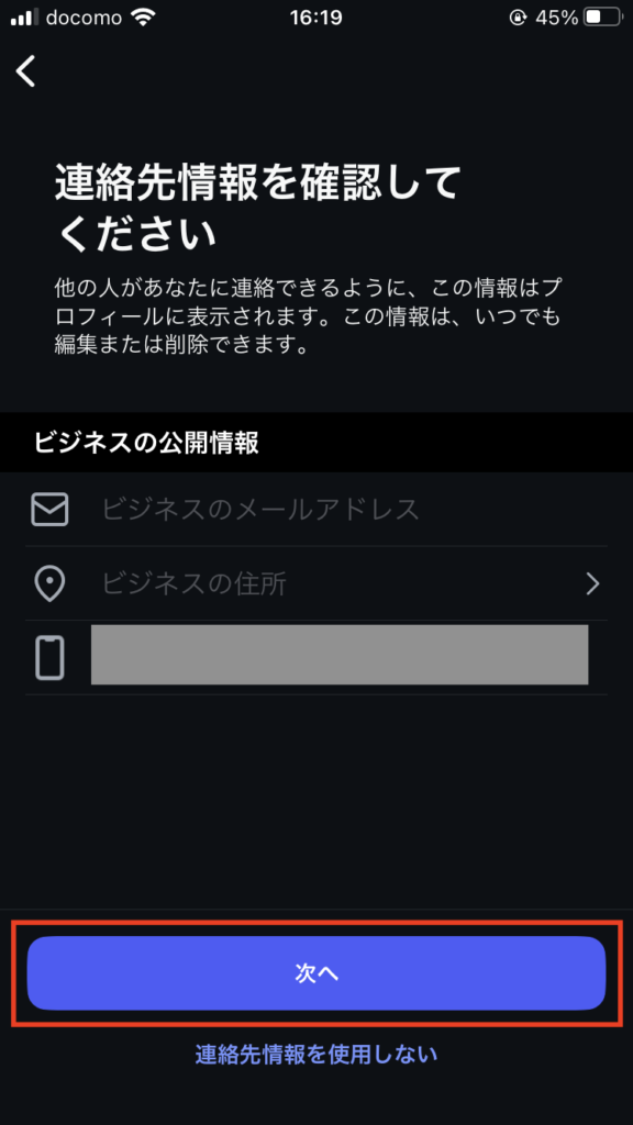 連絡先を公開しない場合は「連絡先情報を使用しない」を選択してください。