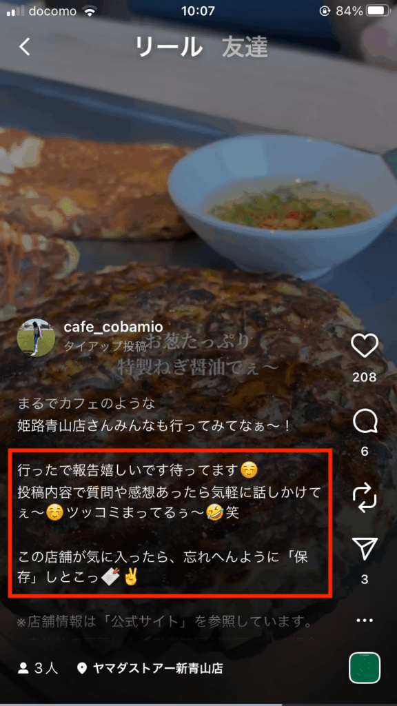 みお(@cafe_cobamio)さんのように、質問・感想を募集したり投稿の保存を呼びかけたりするのも良い方法です。