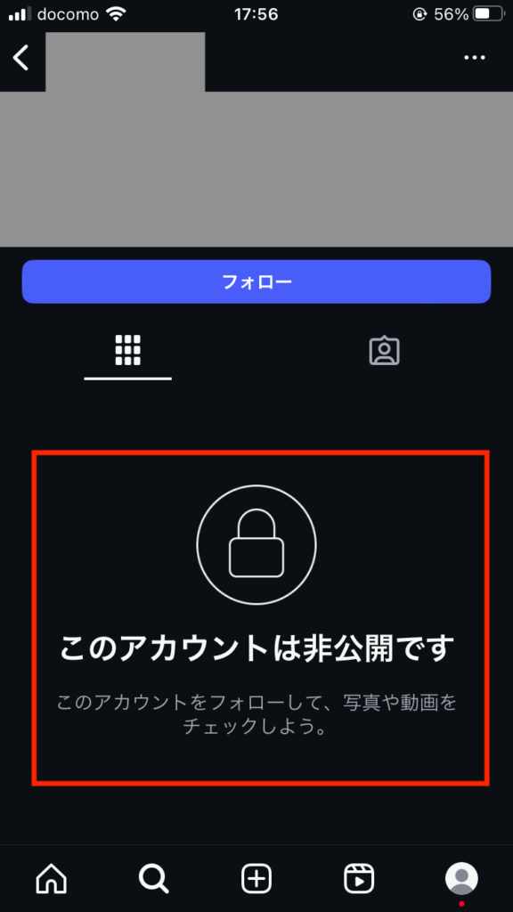 非公開アカウントにしてもユーザー検索には出てきますが、以下のように表示される情報が制限されます。