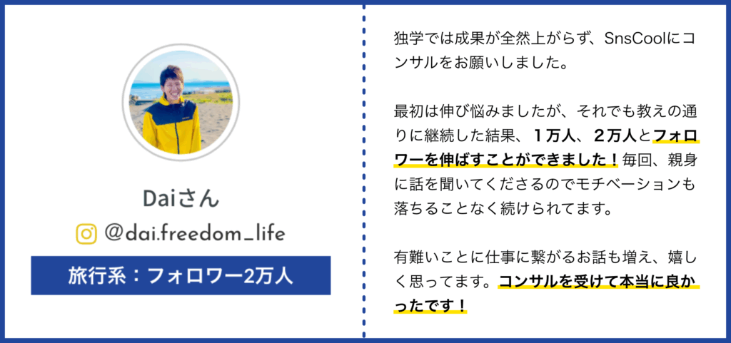 SnsClubでは、スクールから生徒に対してコンサルや運用代行の依頼をする場合があります。