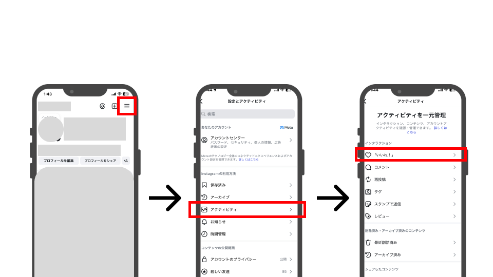 自分がこれまでにいいねした投稿を振り返りたいときは、以下の手順で確認できます。